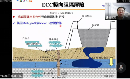 报告会上,杜延军教授首先介绍了污染场地竖向阻隔技术的研究背景和常见的阻隔屏障类型。随后介绍了其团队开发的SHMP-SB(六偏磷酸钠-土-膨润土)阻隔屏障、MSB阻隔屏障(MgO-土-膨润土)、ECC阻隔屏障(工程水泥基复合材料-土-膨润土)、聚合物-SB阻隔屏障(聚合物-土-膨润土)的阻断效果。同时,详细介绍了阻隔屏障材料的工作机理、测定屏障材料渗透系数的方法和化学渗透测试的试验装置。最后,对竖向阻隔技术提出了展望。