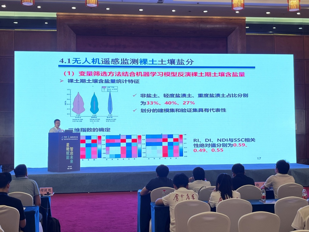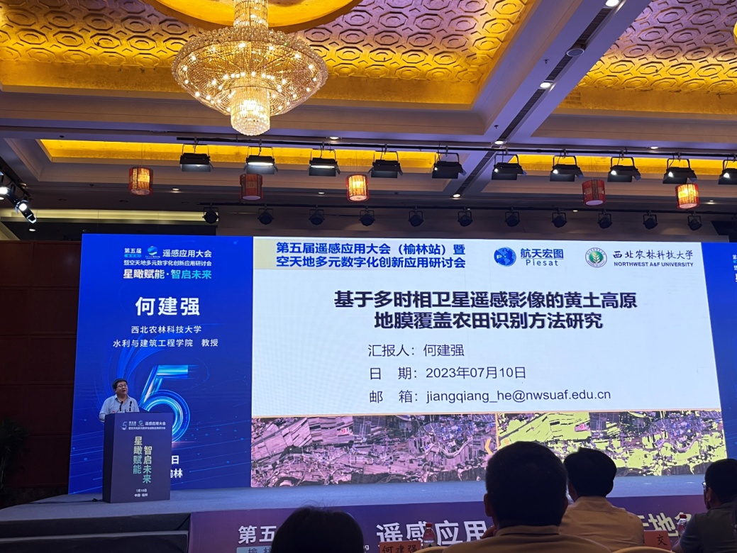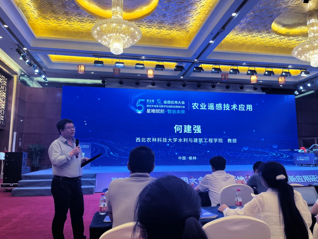 我院智慧水利系主任张智韬教授、何建强教授应邀参加本次会议。张智韬教授在大会“无人机技术及应用分论坛”分会场作了题为《无人机遥感监测植被覆盖条件下的土壤含盐量方法》的专题报告,分享了团队利用无人机遥感、水文模型、机器学习算法等技术反演土壤含盐量的进展和经验。何建强教授担任大会“农业遥感技术应用”分论坛主持人,并作了题为《基于多时相卫星遥感影像的黄土高原地膜覆盖农田识别方法研究》,分享了团队利用卫星数据、机器学习算法等技术监测识别黄土高原地区地膜覆盖农田的最新研究进展。